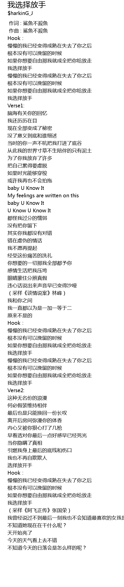 | [02:39.301] | wǒ xuǎn zé fàng shǒu |