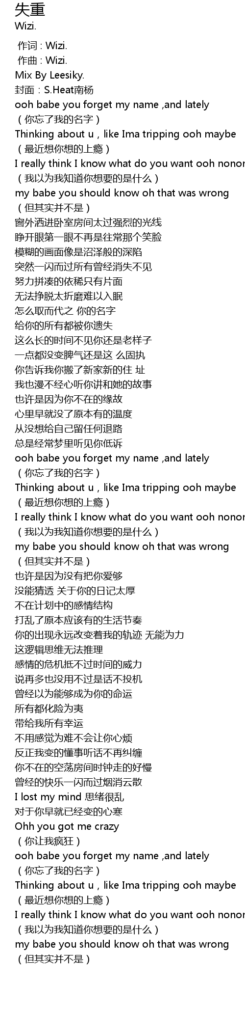 | [00:16.427] | ooh babe you forget my name ,and lately |