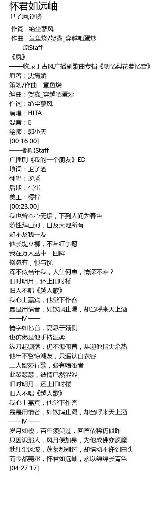| [04:14.10] | 而今都莞尔,怀君如远岫,永以绵绵长青色 |