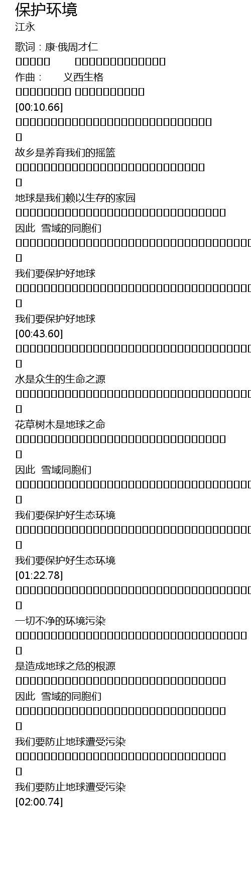 | [01:20.36] | 我们要保护好生态环境 |