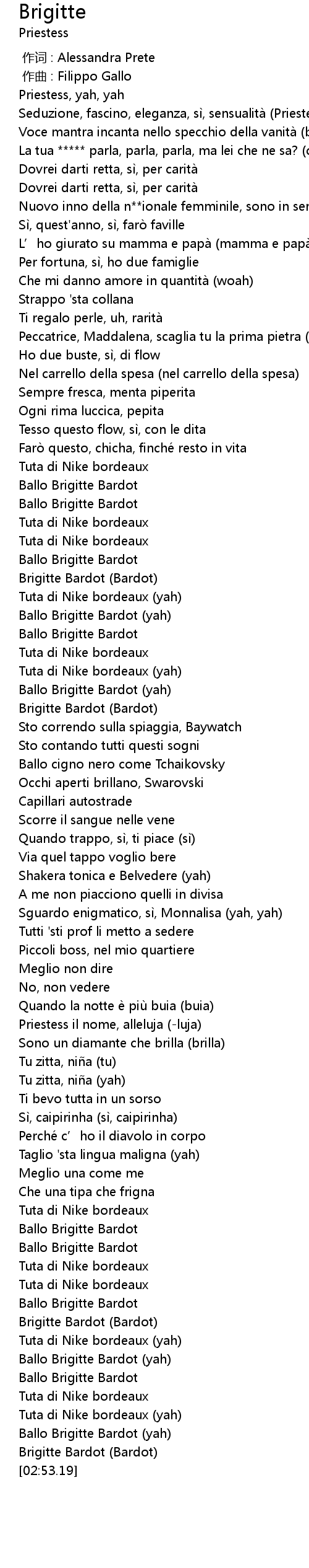 | [02:49.56] | Brigitte Bardot (Bardot) |