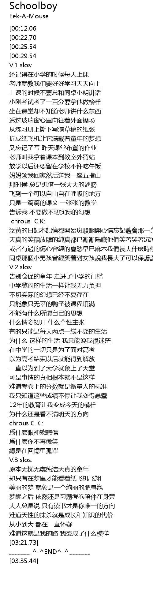 | [02:55.40] | 梦醒之后 依然还是习题考卷陪伴在身旁 |