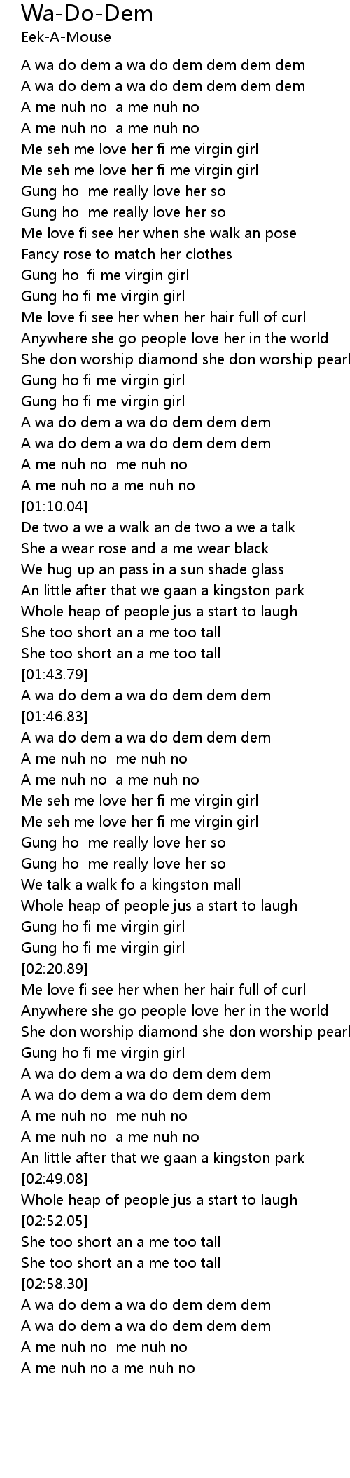 [02:58.92] A wa do dem a wa do dem dem dem
