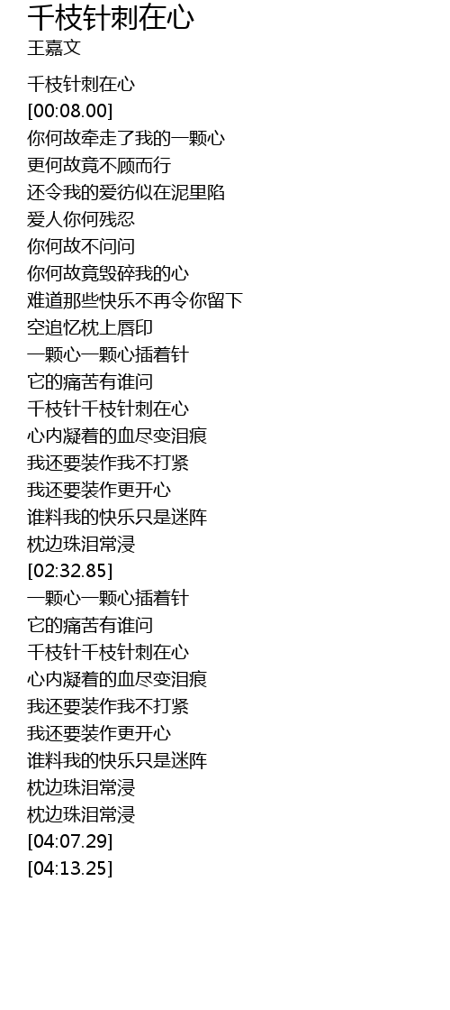 | [00:00.00] | 千枝针刺在心 |