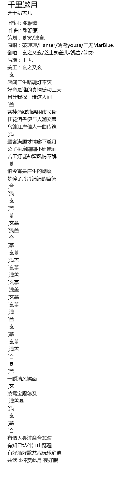 | [00:00.904] | 翻唱:玄之又玄/芝士奶盖儿/浅言/慕冥·. |