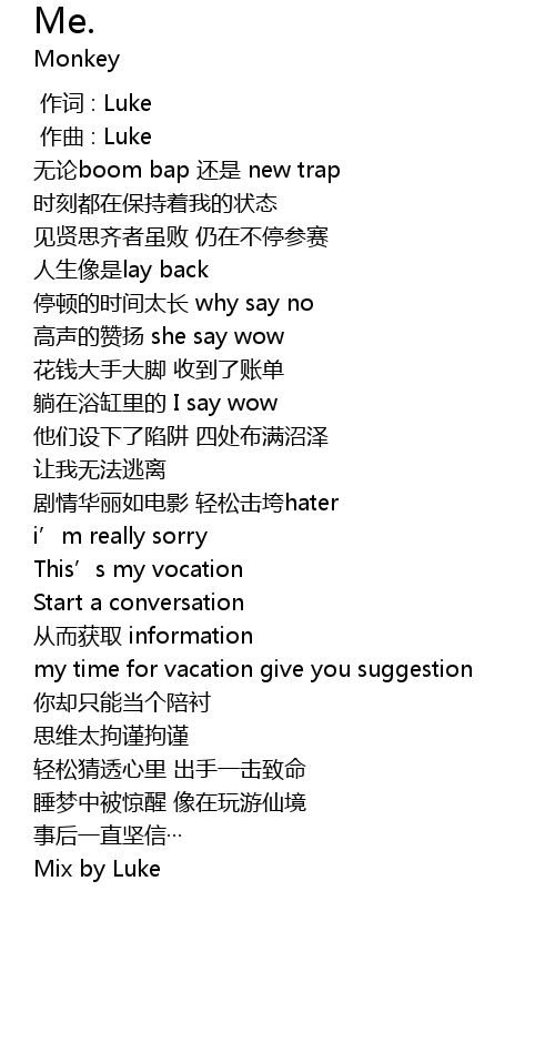 | [00:00.000] | 作词 : Luke |