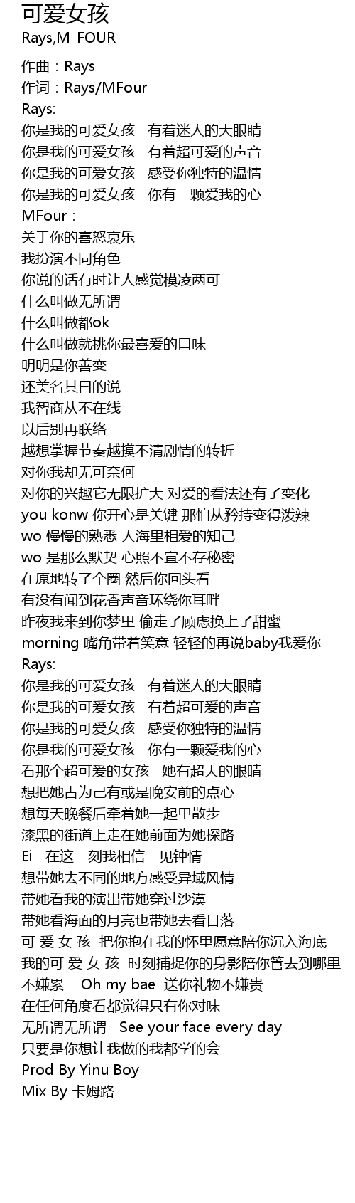 | [00:25.996] | 你是我的可爱女孩 有着超可爱的声音 |