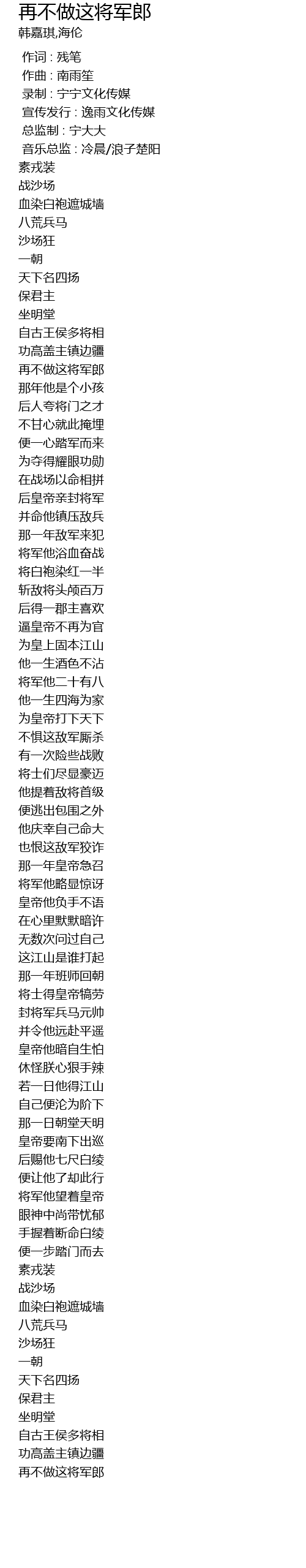 | [00:19.187] | 再不做这将军郎 |