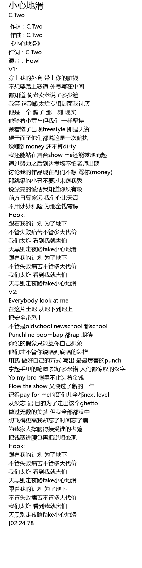 | [02:11.74] | 天黑别走夜路fake小心地滑 |