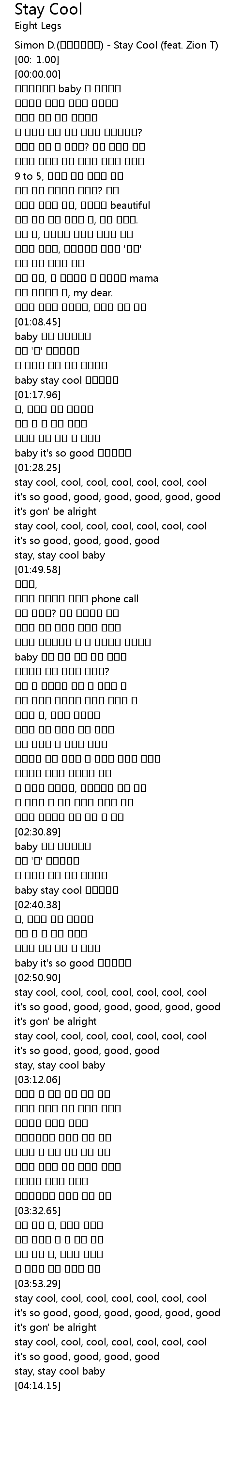| [00:-2.00] | Simon D.(사이먼도미닉) - Stay Cool (feat. Zion T) |