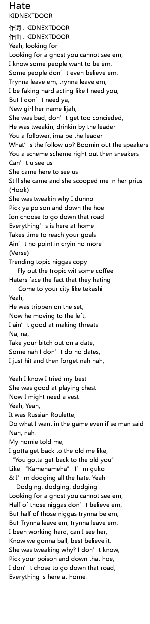 | Song | Hate |
