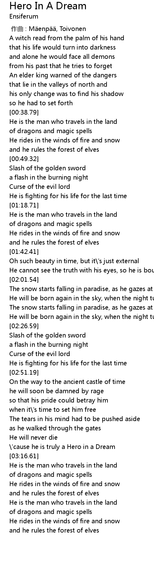 [03:13.56] \'cause he is truly a Hero in a Dream