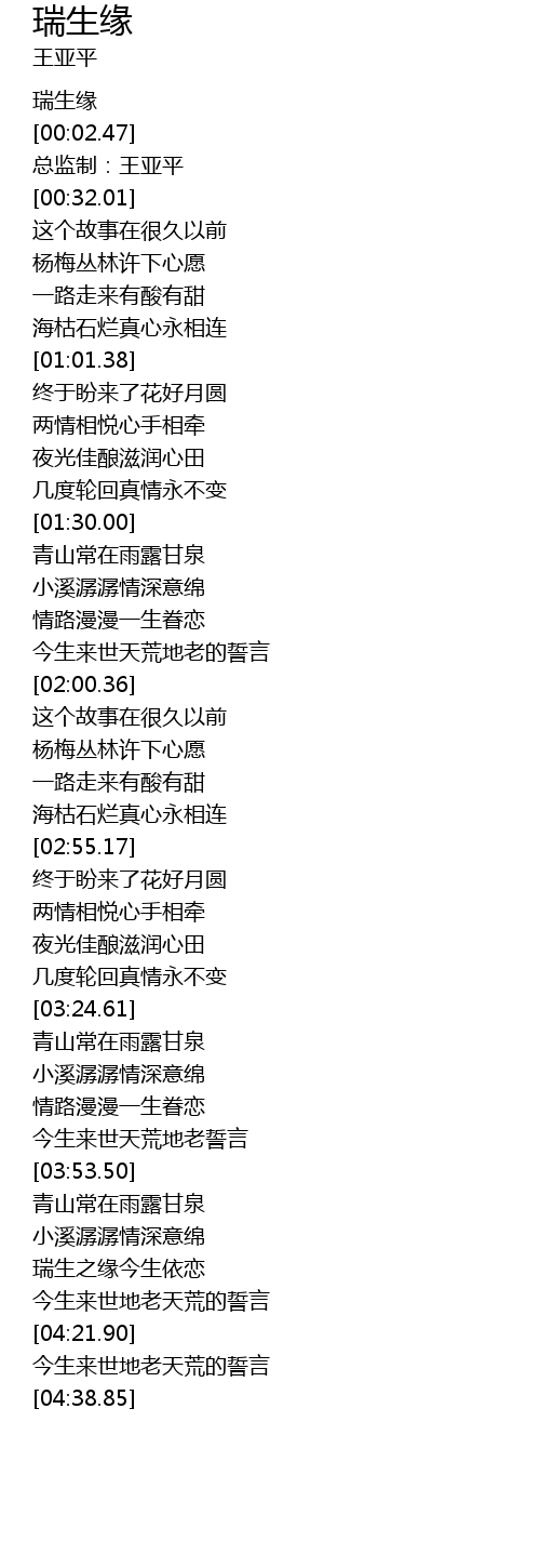 | [04:07.96] | 瑞生之缘今生依恋 |