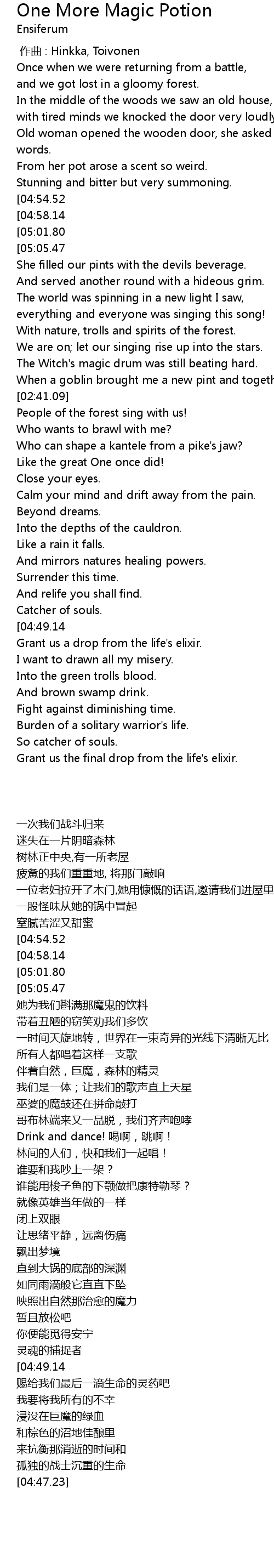 | [04:50.99] | Grant us the final drop from the life' s elixir. |
