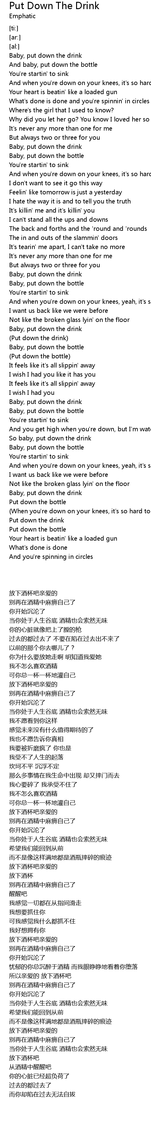 | [00:33.05] | What's done is done and you're spinnin' in circles |