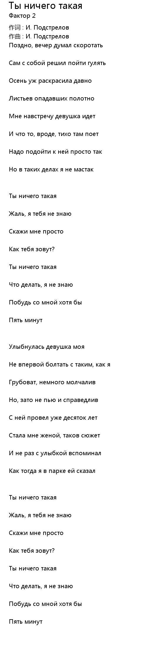 Ты ничего такая  Lyrics