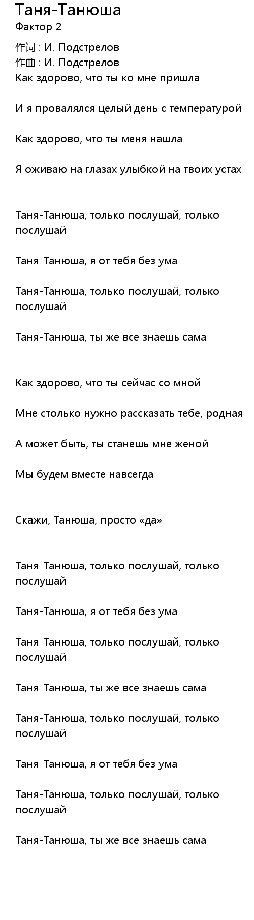 Таня-Танюша, только послушай, только послушай |