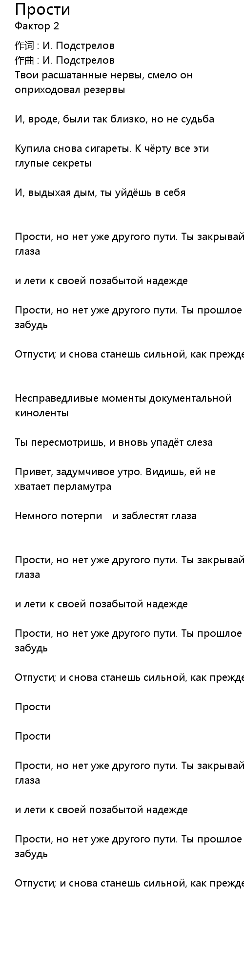 Прости, но нет уже другого пути. Ты прошлое забудь |