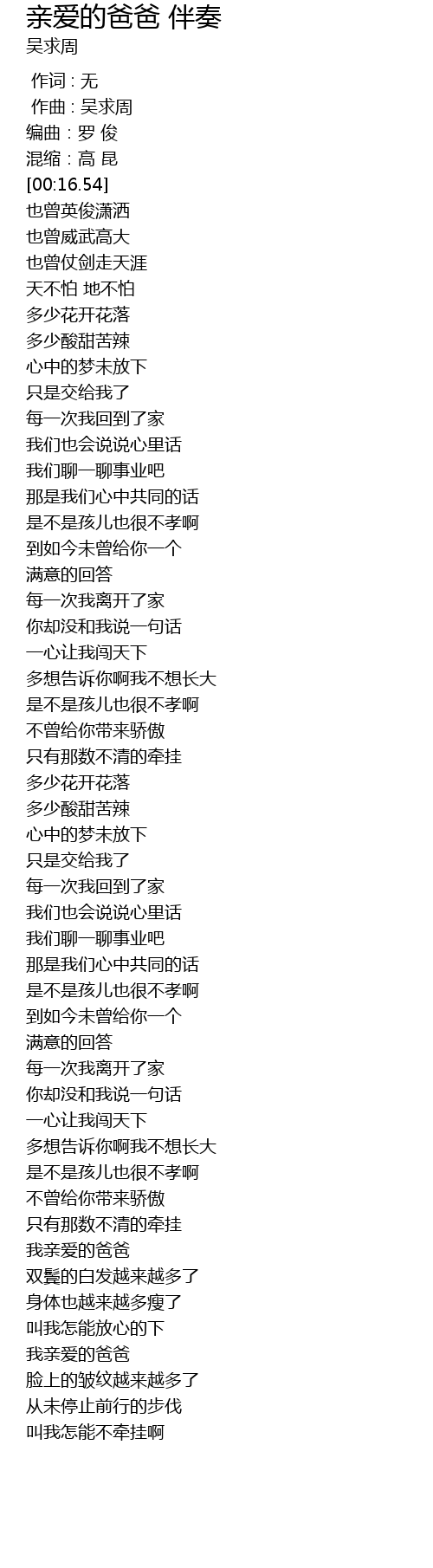 | [04:56.18] | wǒ qīn ài de bà bà |