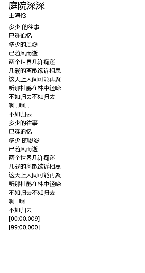 | [03:00.39] | 听那杜鹃在林中轻啼 |
