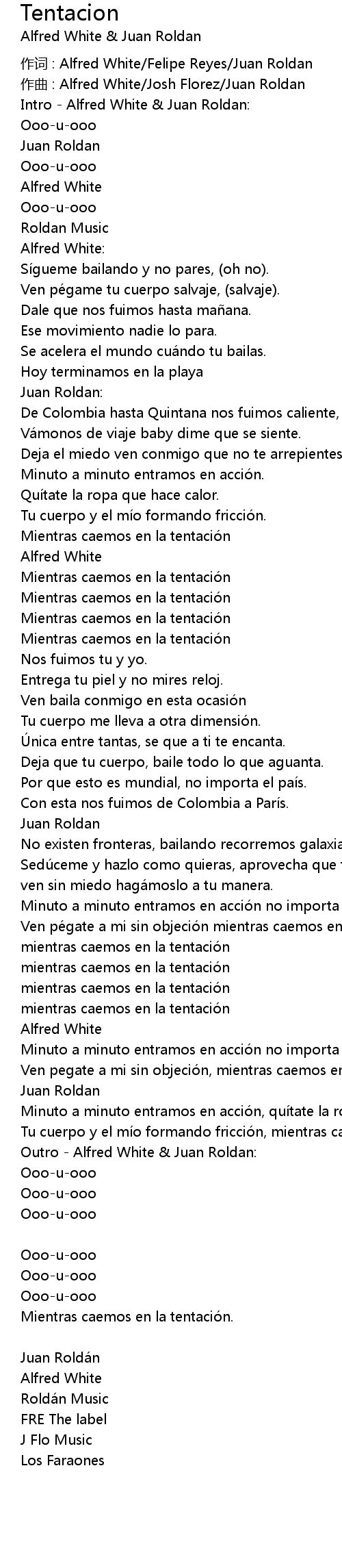 | 作词 : Alfred White/Felipe Reyes/Juan Roldan | |