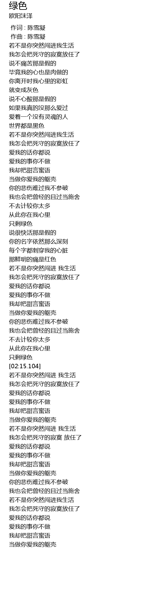 | [02:11.105] | zhǐ shèng lǜ sè |