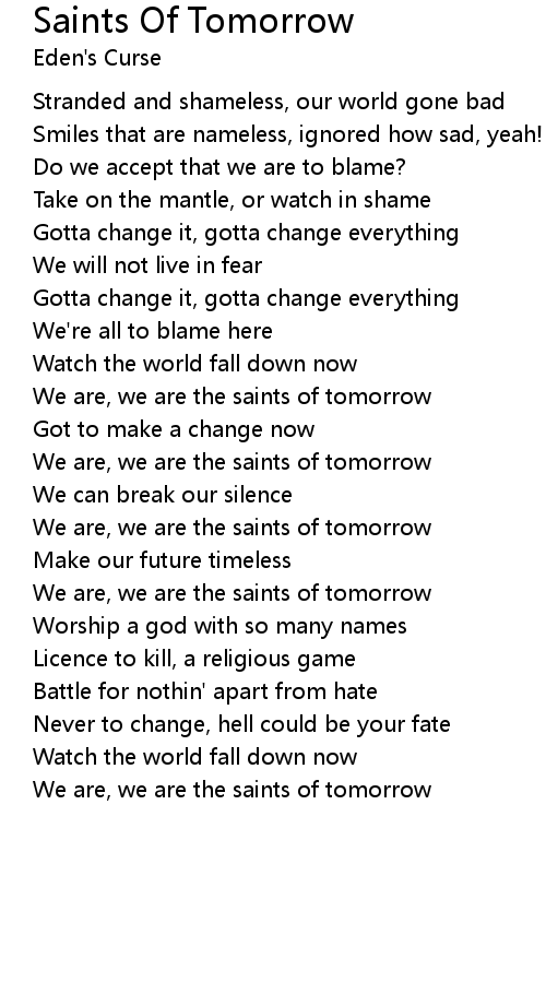 We are, we are the saints of tomorrow |
