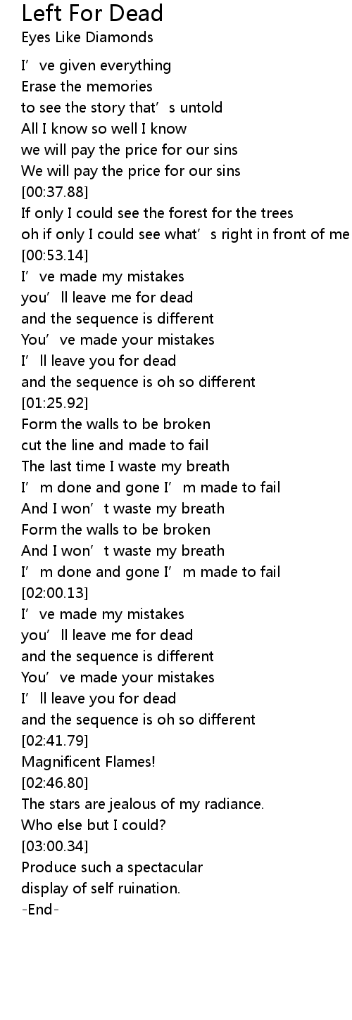 | [02:18.84] | you' ll leave me for dead |