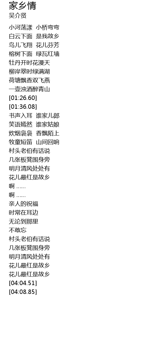 | [00:35.31] | 白云下面 是我故乡 |