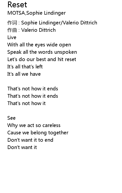 | 作词 : Sophie Lindinger/Valerio Dittrich | |