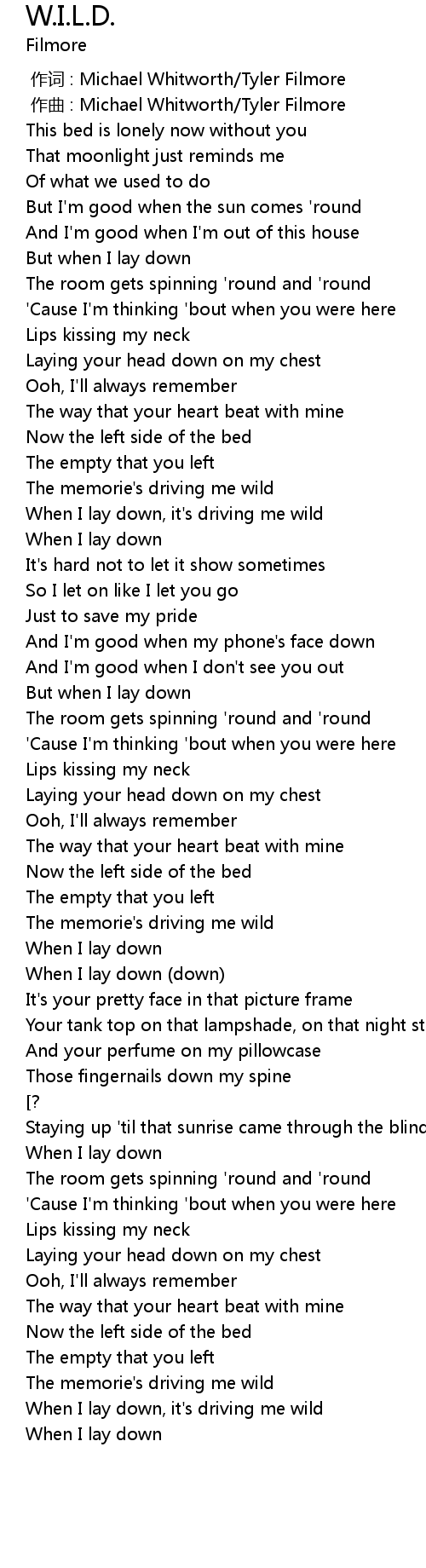 | [02:55.818] | When I lay down, it' s driving me wild |