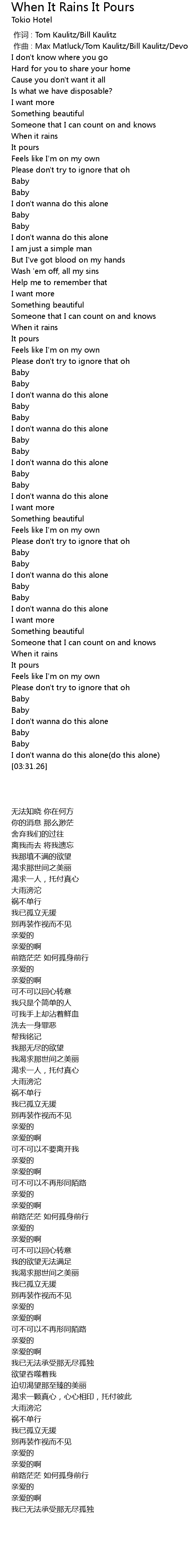 | [00:00.000] | 作词 : Tom Kaulitz/Bill Kaulitz |