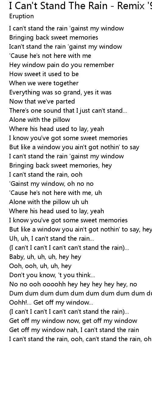 I can't stand the rain, ooh, can't stand the rain, oh |