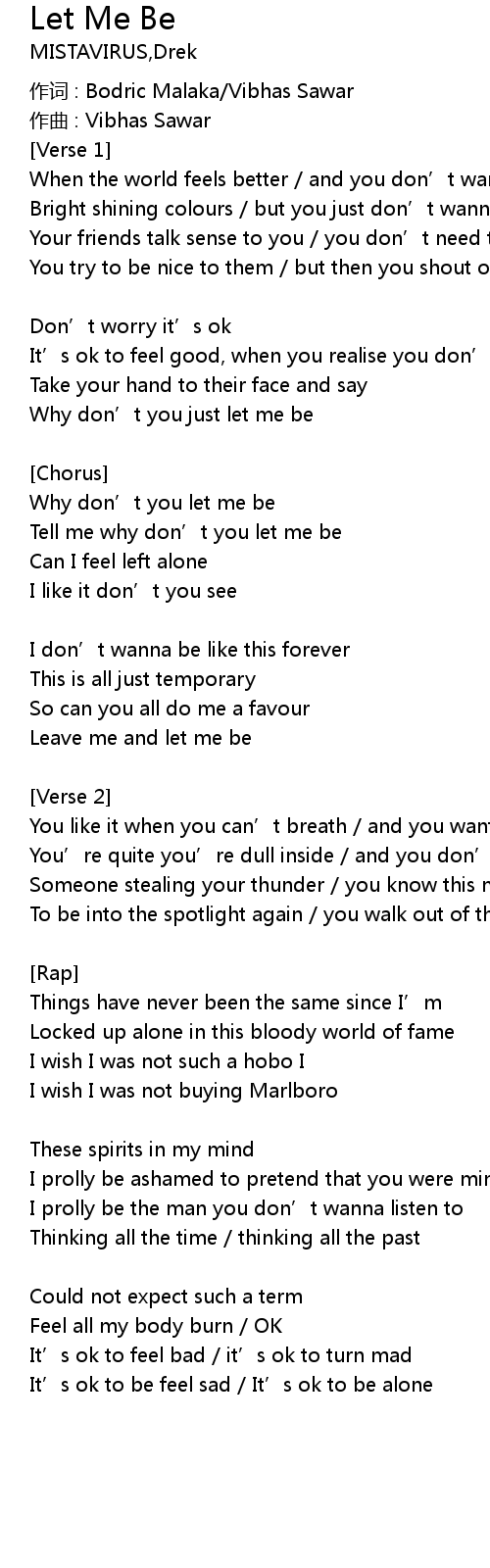 | You try to be nice to them but then you shout out ' Let me be!' | |