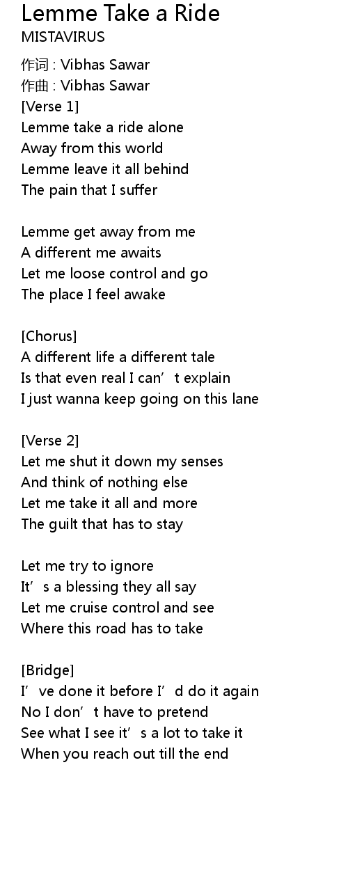 | Lemme take a ride alone | |