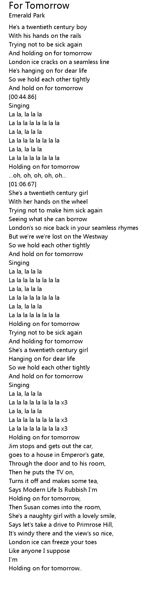 And hold on for tomorrow |