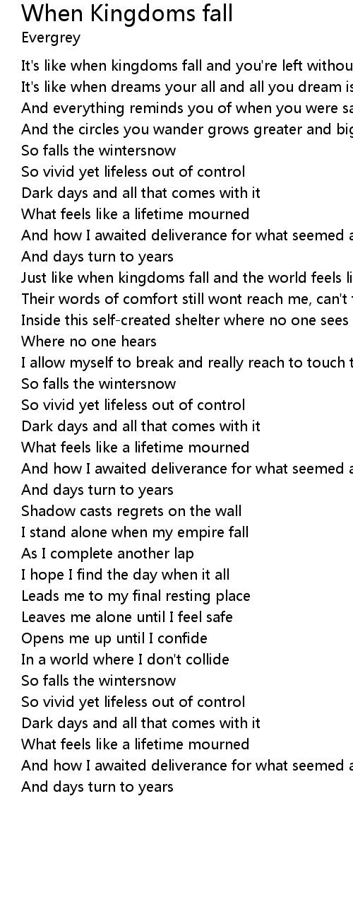 | Just like when kingdoms fall and the world feels like the deceiver | |