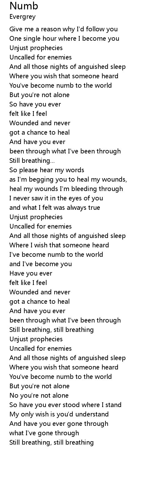 | I've become numb to the world | |
