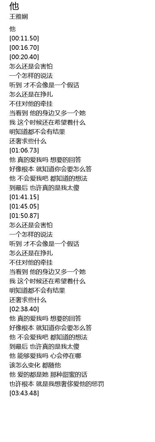 | [02:41.24] | 他 真的爱我吗 想要的回答 |