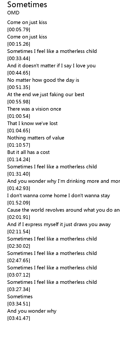 Sometimes I feel like a motherless child |