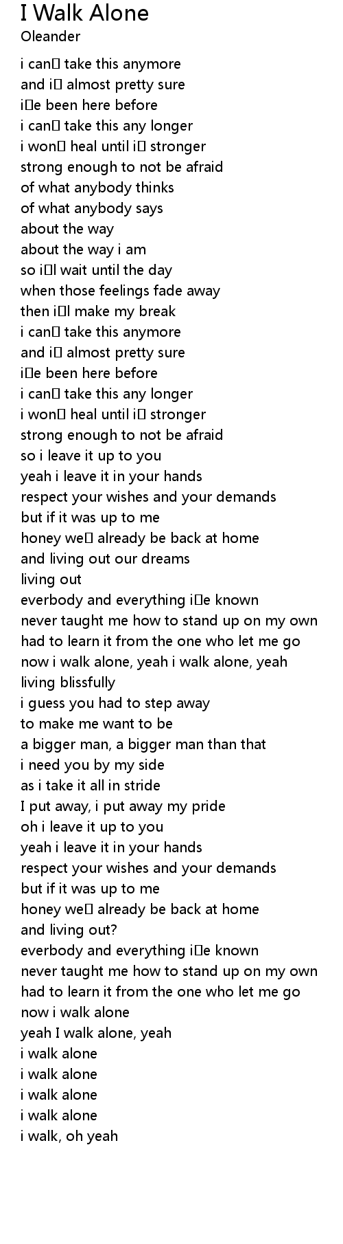 | now i walk alone, yeah i walk alone, yeah | |