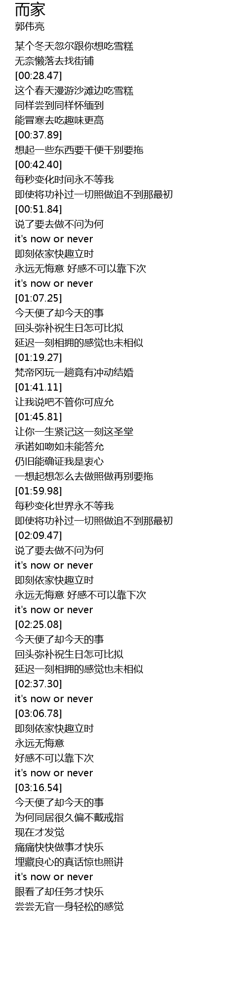 | [00:58.37] | jí kè yī jiā kuài qù lì shí |