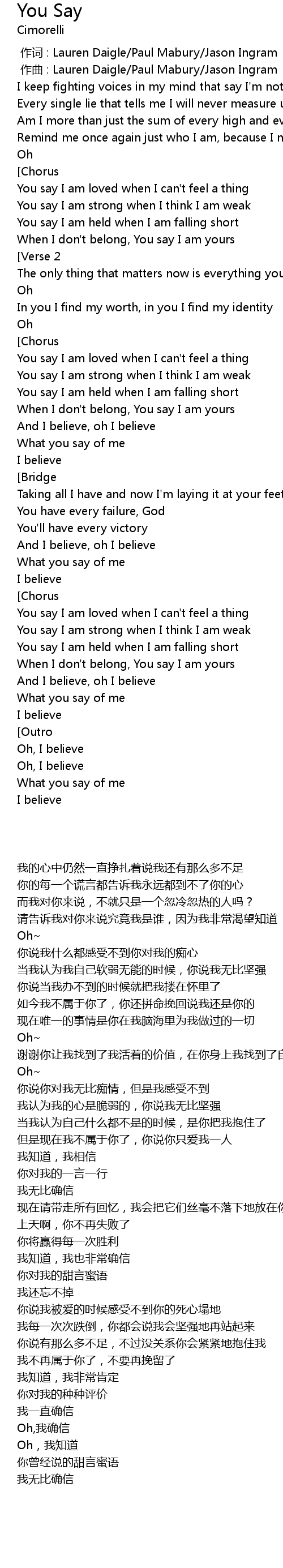 | [00:01.000] | 作曲 : Lauren Daigle/Paul Mabury/Jason Ingram |