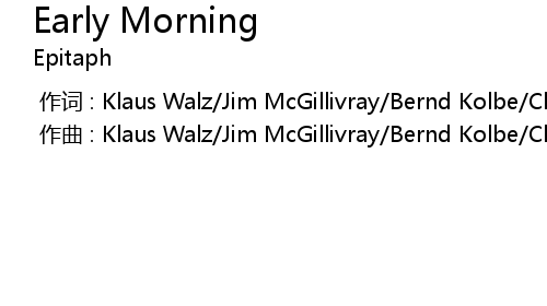 [00:00.000] 作曲 : Klaus Walz/Jim McGillivray/Bernd Kolbe/Clifford Jackson