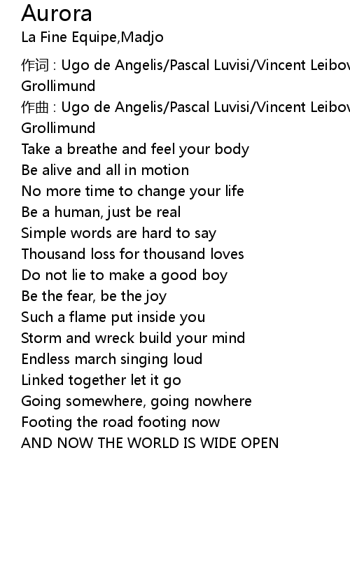 | 作词 : Ugo de Angelis/Pascal Luvisi/Vincent Leibovitz/Mathieu Gibert/Cecile Grollimund | |