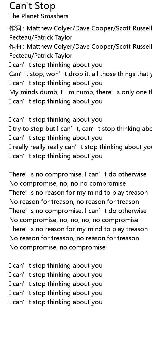 | I try to stop but I can’t, can’t stop thinking about you | |