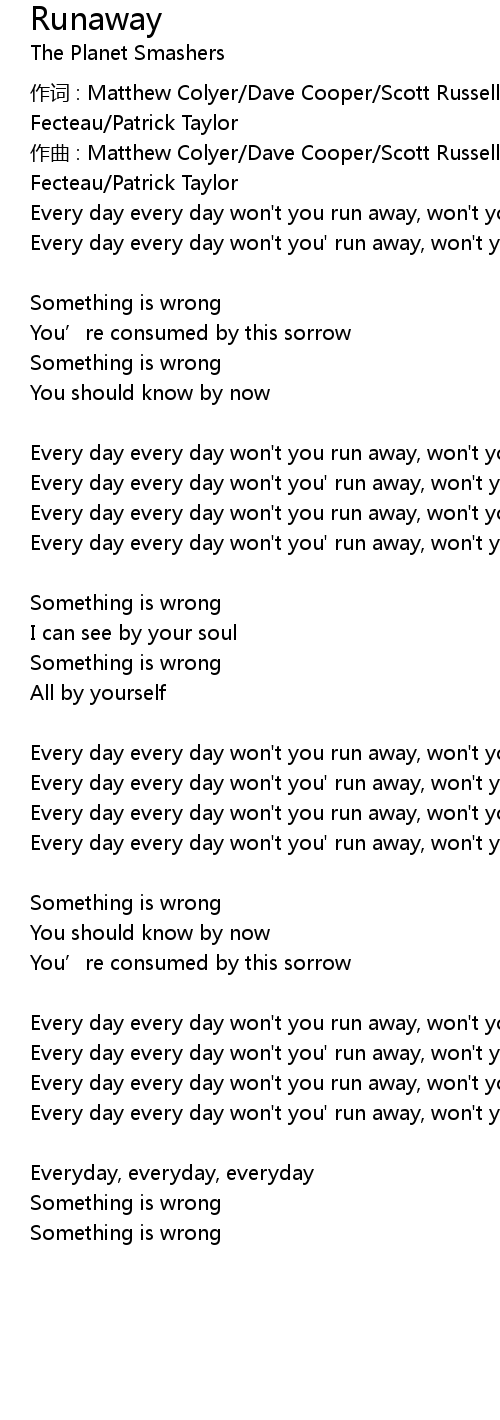 | Every day every day won' t you run away, won' t you run away with me? | |