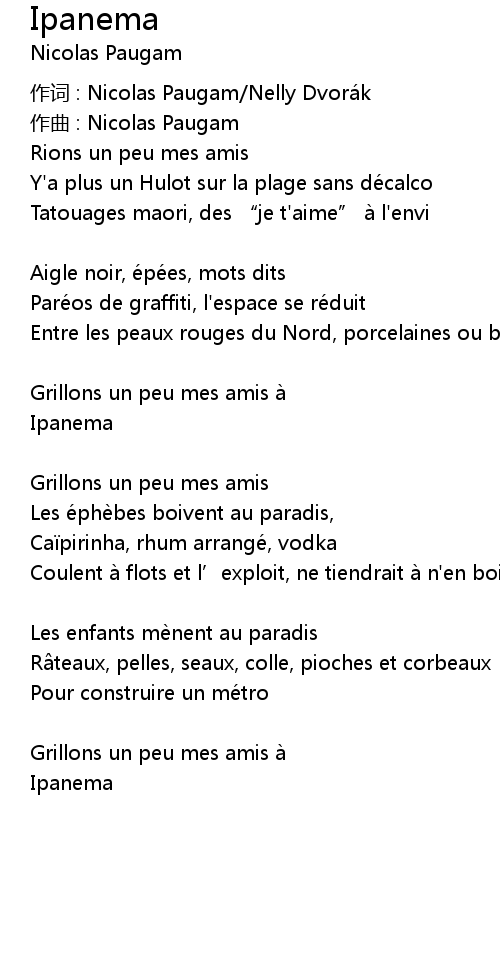 | 作词 : Nicolas Paugam/Nelly Dvorák | |