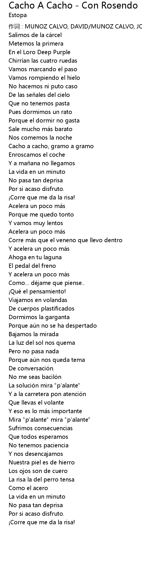 | 作词 : MUNOZ CALVO, DAVID/MUNOZ CALVO, JOSE MANUEL | |