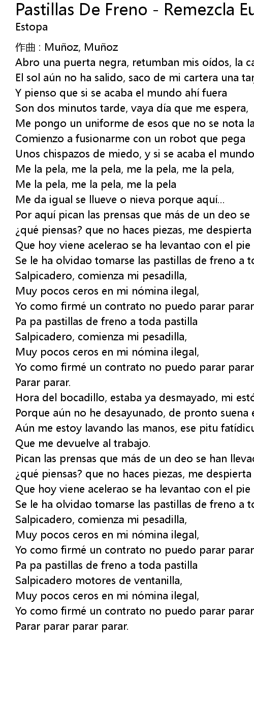 | Song | Pastillas De Freno - Remezcla Eugenio Muñoz |